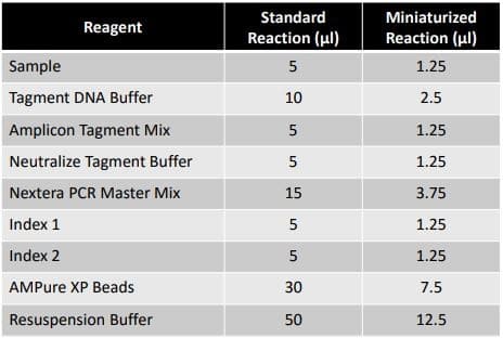 Table 1. Miniaturized Reaction Volumes for Illumina Nextera XT Sample Preparation