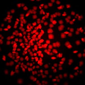 With MFI, you can now differentiate between crystals of a protein-protein complex and crystals of just one protein. Simply, label the two proteins, or subunits, prior to crystallization with two different amine-reactive dyes and then image your drop at the two corresponding wavelengths. Crystals that fluoresce at both wavelengths are protein-protein complexes, whereas those that fluoresce at only one wavelength are of a single protein.